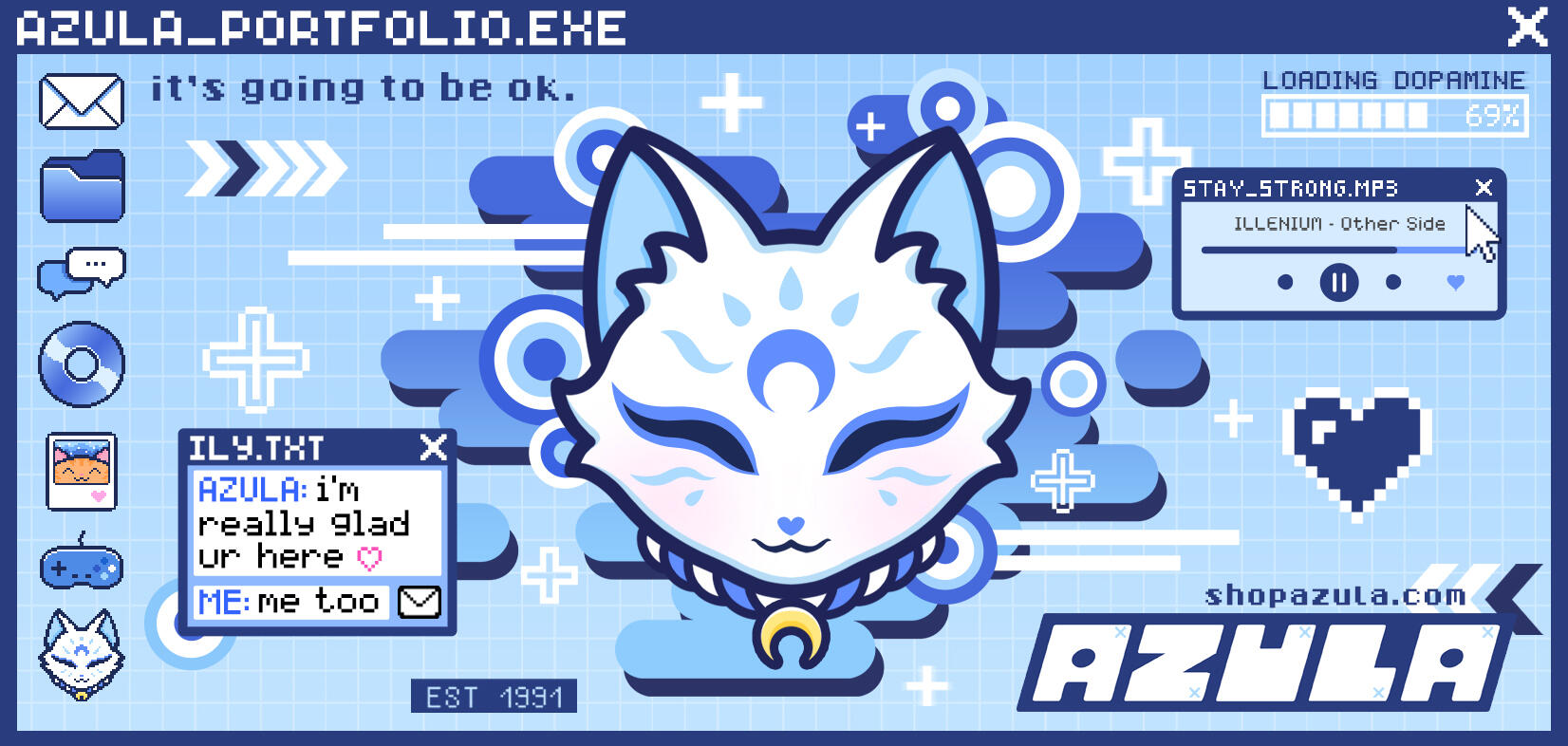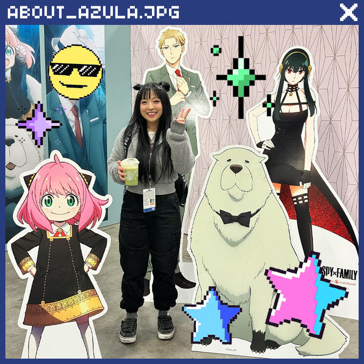 My name is Jaclyn and I am the artist behind Azula.Not long after attending my first anime convention, I became inspired and was in awe of the culture, cosplayers, and especially the artists in the artist alleys. This pushed me to create art of my very own and it has been my full time passion business since 2018. Through art, I am able to connect with so many other people who share the same interests and passion for Japanese culture. I am so grateful that I can call this my job and I hope that I can return the happiness and love that I receive from being in this community.I love creating practical art that others can wear such as accessories like pins, shoe charms, handmade clay trinkets and tote bags. Everything is designed by myself and if I can help it, I make my merch in house (stickers, tote bags, clay trinkets, prints, and mugs).My art is inspired by many things in my life including pop culture, animals, life experiences, of course anime.- ♡ Jackie